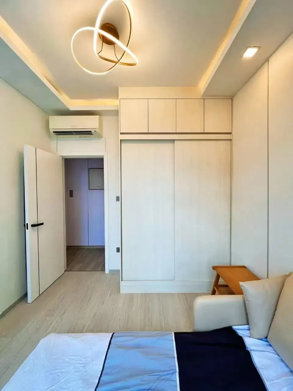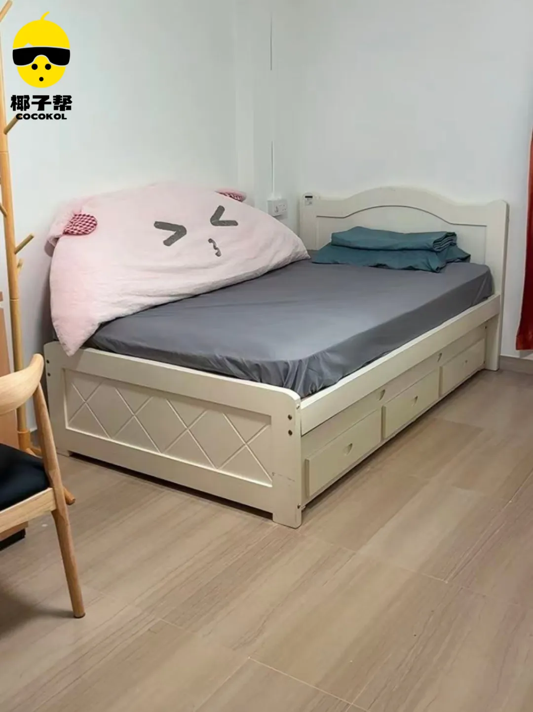 超级单人床、衣柜、书桌、空调、风扇全部备齐,真正拎包入住。