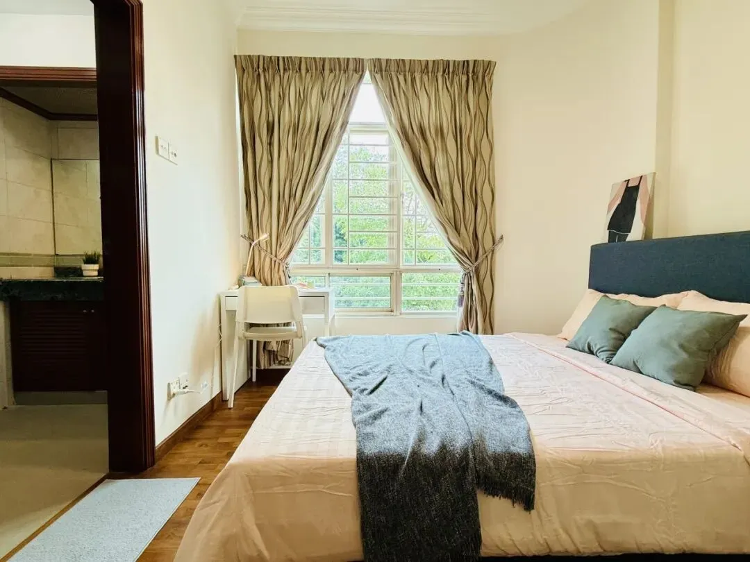 武吉知马黄金地段,高端公寓主人房出租!✅ 步行5分钟到蓝线King Albert Park地铁站✅ 房间宽敞,1-3人都可舒适入住,现住3人很安静✅ 公寓设施全:泳池、健身房、BBQ区✅ 生活自由:可煮饭,随时能入住✅ 租金$1900/月,水电网自理,押1付1