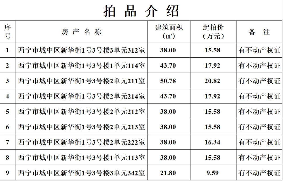 受委托,我公司于2026年2月6日上午10时在青海省公共资源交易中心对位于“西宁市城中区新华街1号”的九套房产面向社会进行公开拍卖。