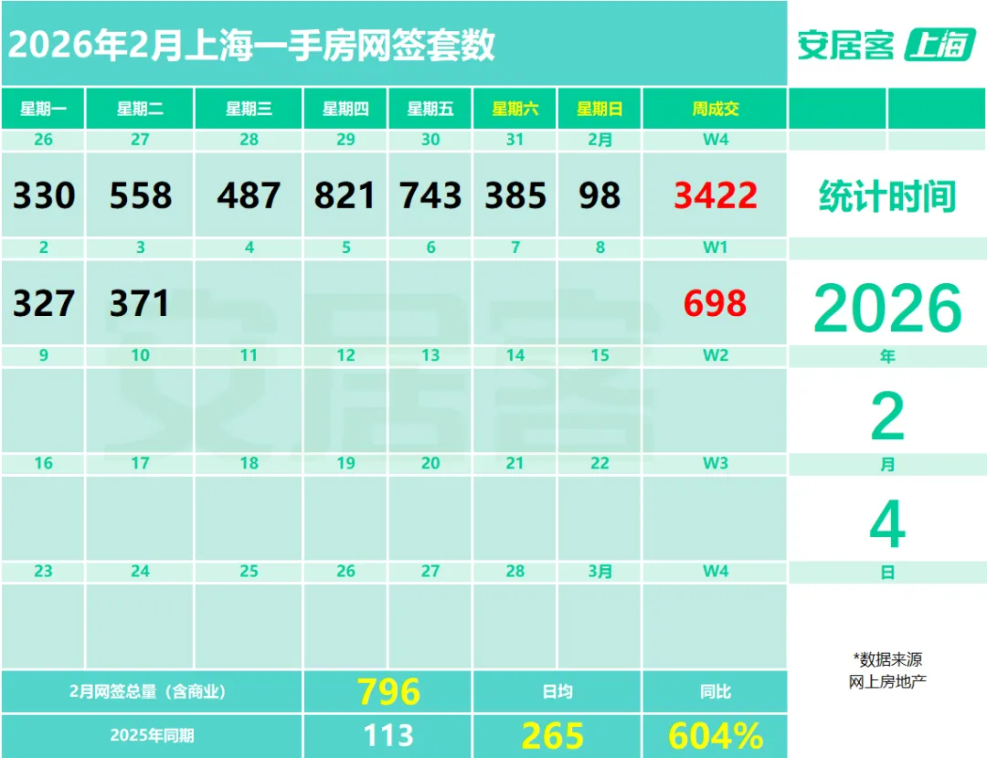 新房371套,二手房652套!2月3日上海网签数据出炉!