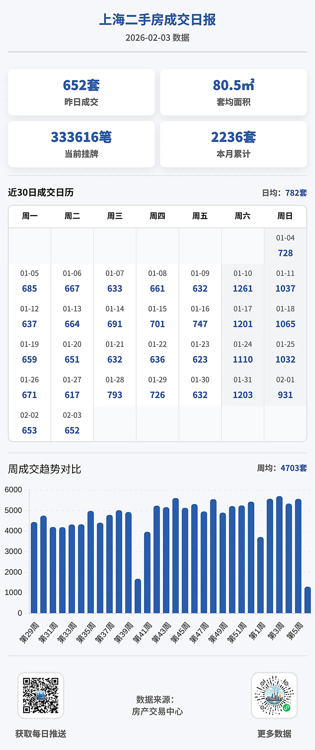 新房371套,二手房652套!2月3日上海网签数据出炉!