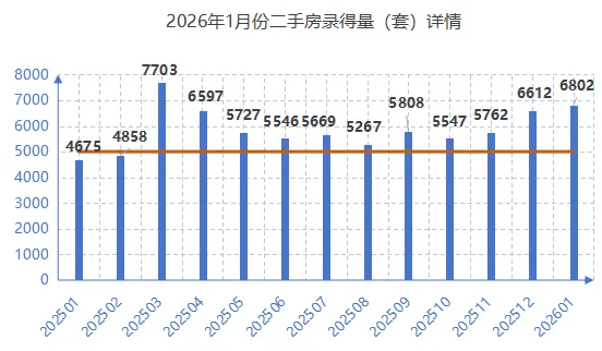 据深圳市房地产中介协会统据深圳市房地产中介协会统计数据,2026年1月二手房共计录得6,802套,环比增长2.9%,同比大幅增长45.5%,创近10个月新高。这是市场连续11个月录得量破5000套,表明市场已走出低谷,置业者信心显著修复,为后续“小阳春”行情奠定了坚实基础。