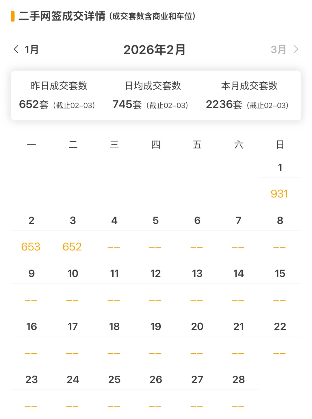 上海二手房最新成交量:昨日(2月3日)网签652套(含住宅、商业、车位等)。