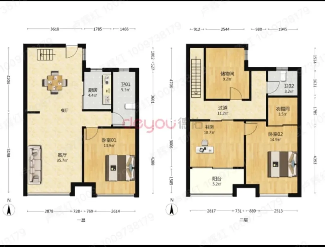 98.69㎡,跃层,精装3居室,中间楼层