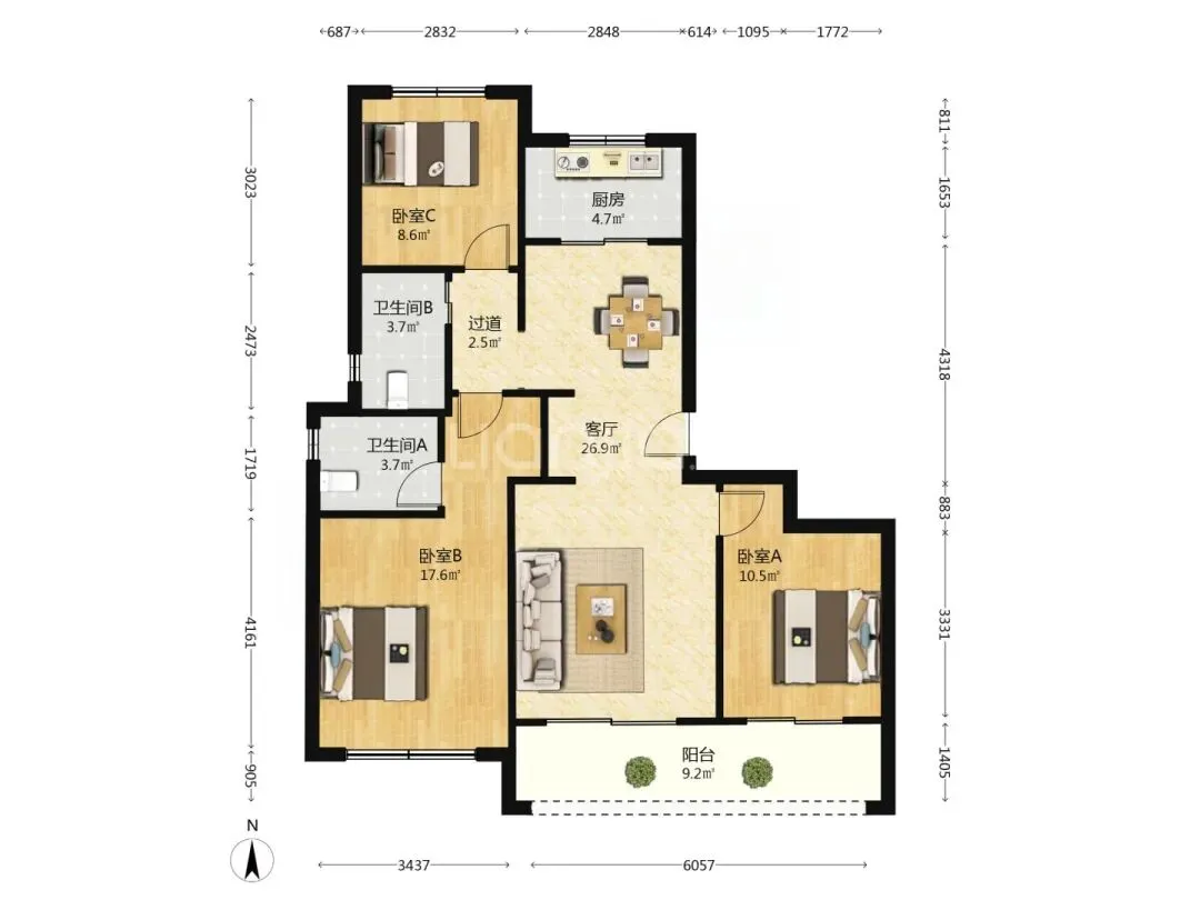 改善户型:140㎡ 四房两卫,精装修