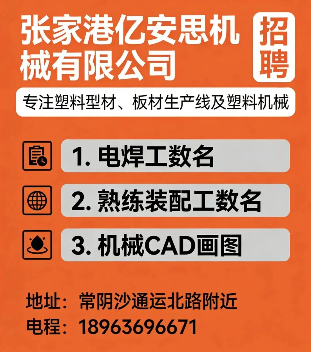 【招聘岗位】机修工4名