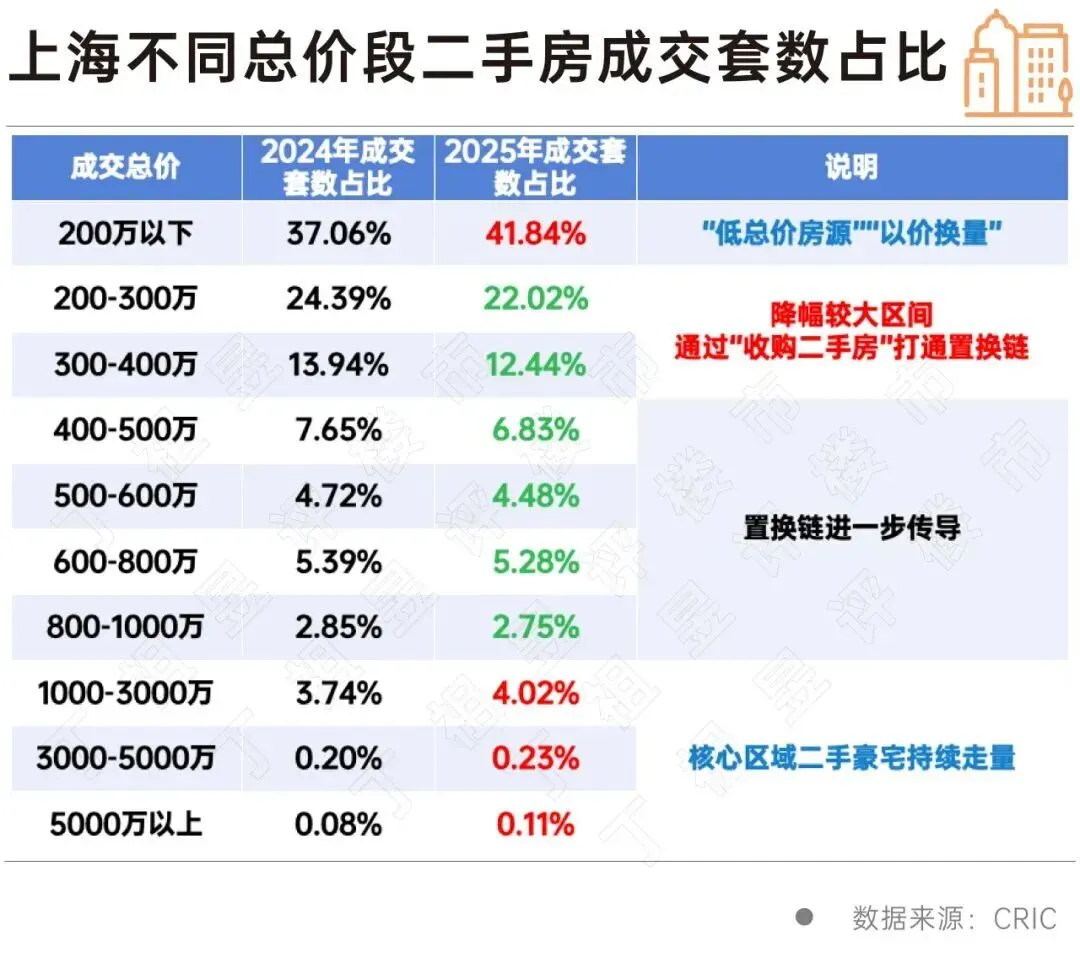 资金有了,地方政府托底房市,相当于启动了置换链条,就从下图可以看到,整个上海,包括其他城市的二手房成交量,大部分集中于200万以下,而这部分房源就是老破小,也是单价最低的房子。