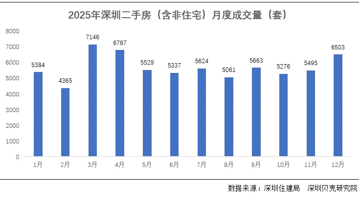 >2025年深圳二手房月度成交走势