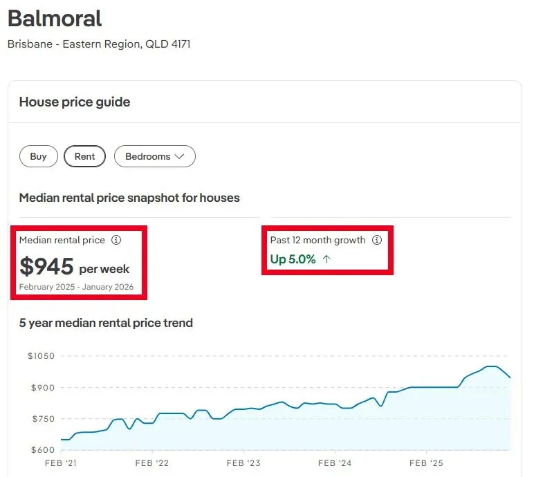 Balmoral 作为布里斯班东区内城的成熟住宅区,因地理位置优越、生活配套齐全和社区氛围稳定,被视为长期持有的蓝筹房产板块。区域内独立屋供应有限、教育与休闲资源集中,这些因素使得需求持续稳健,无论是自住还是投资都具有吸引力。