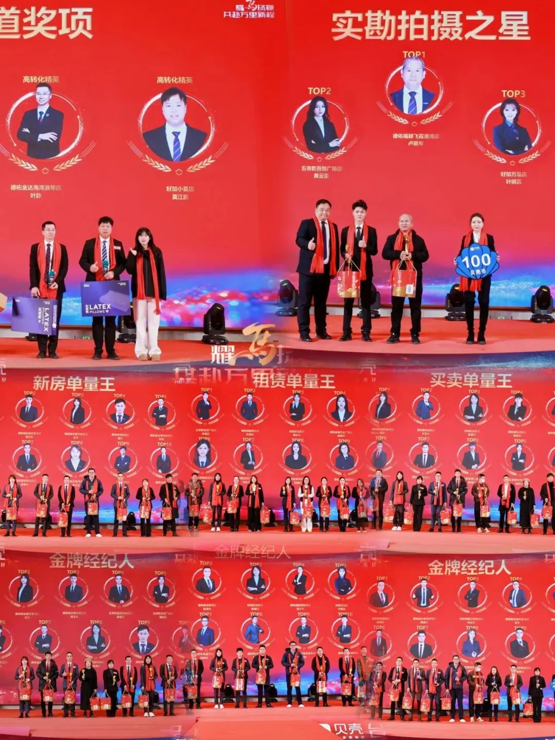 随着主持人开场,表彰环节正式开始。聚光灯下,好加地产的伙伴们凭借专业的服务与亮眼的业绩,站上了荣誉的领奖台。