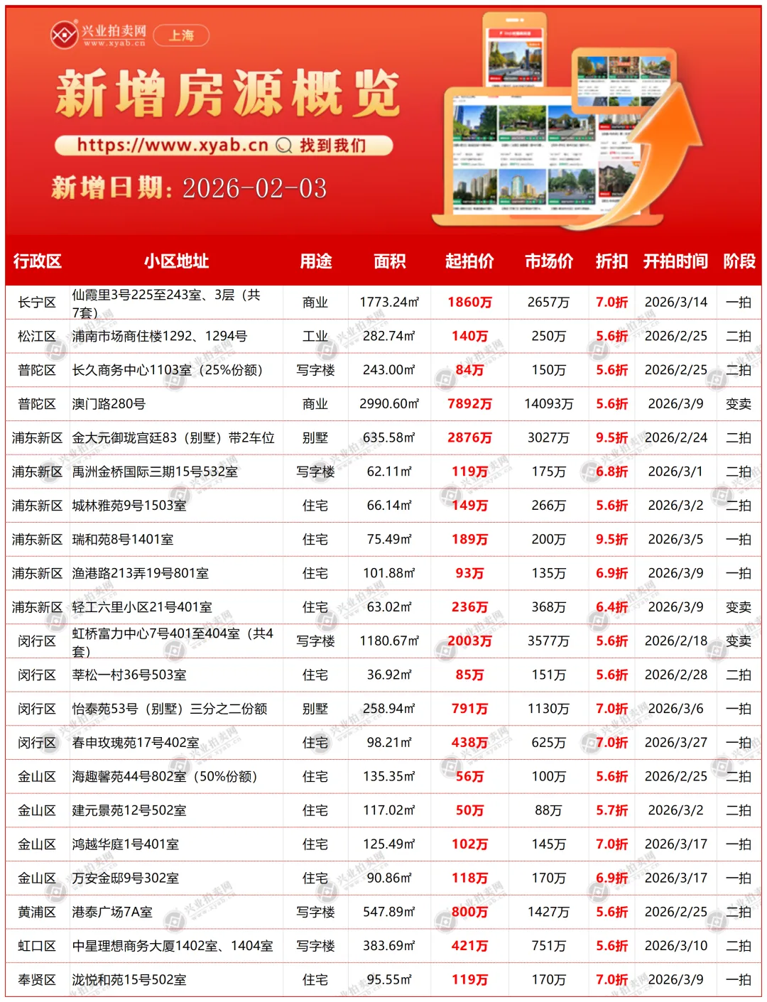 上海拍卖房产昨日新增详情
