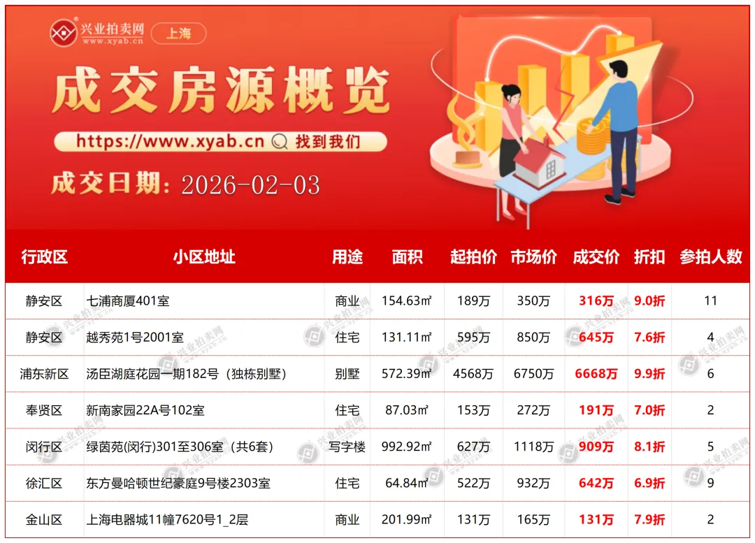 上海拍卖房产昨日成交详情