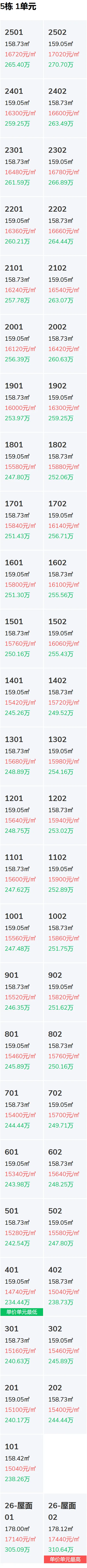 房源一房一价表如下: