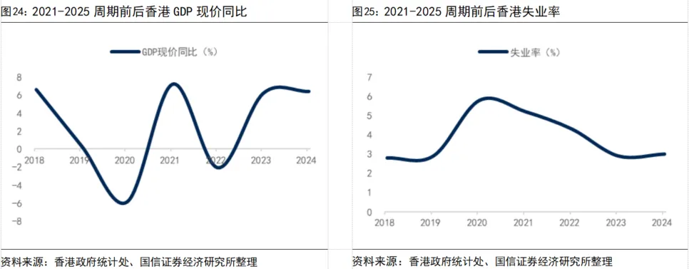 2021-2025下跌周期显然更加温和,且目前复苏周期“政策+利率+需求+内地红利”的共振幅度小于2003年,我们预计中期内香港房地产市场的复苏将不会复制2003-2008年的修复幅度,判断本轮修复短期是否可以持续则需密切关注后续宏观环境和利率变化的不确定性。