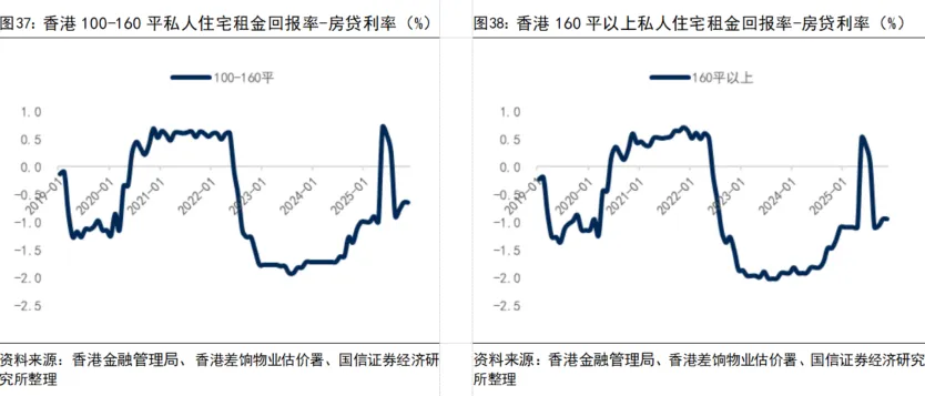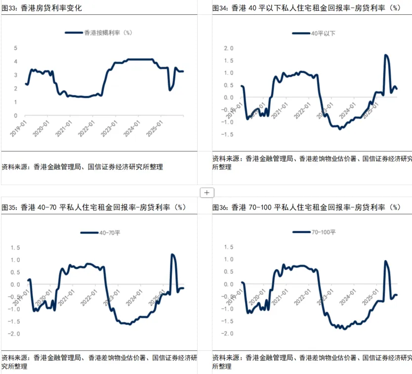 租金回报率反超房贷利率:香港私人住宅租金已回到甚至超过2019年高点,推动租金回报率显著修复,5月HIBOR大幅下降导致香港房贷利率走低,租金回报率大于房贷利率带来了成交放量与房价止跌,是本轮香港楼市企稳的主传导链条。
