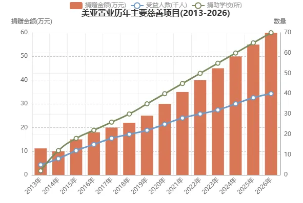 下面这张图表展示了美亚置业历年慈善捐赠的主要项目和影响: