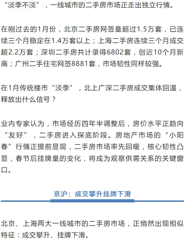 北上广深成杭二手房交易量2.4