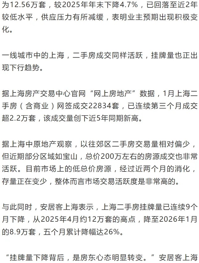 2026年1月上海房产市场分析
