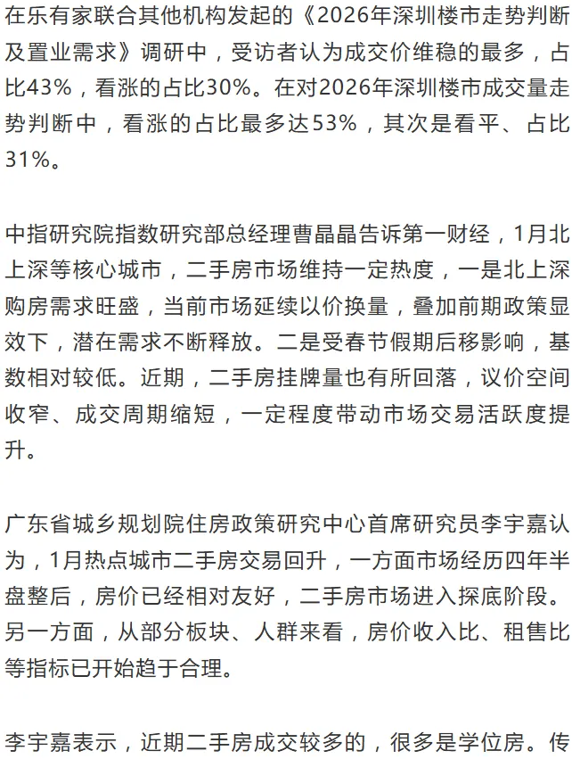 1月深圳二手房录得量6802套 创近10个月新高