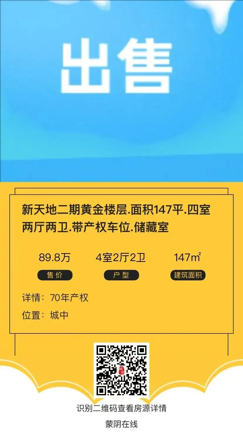 最近有在找二手房、出租、店铺转让信息吗?以下是部分房源,如果您在找房源信息可以看看!也可点击底部“阅读原文”即可进入蒙阴在线房产网,或直接向蒙阴在线公众微信号—蒙阴在线网络传媒发送关键词“房屋”,查看、发布各类房源信息