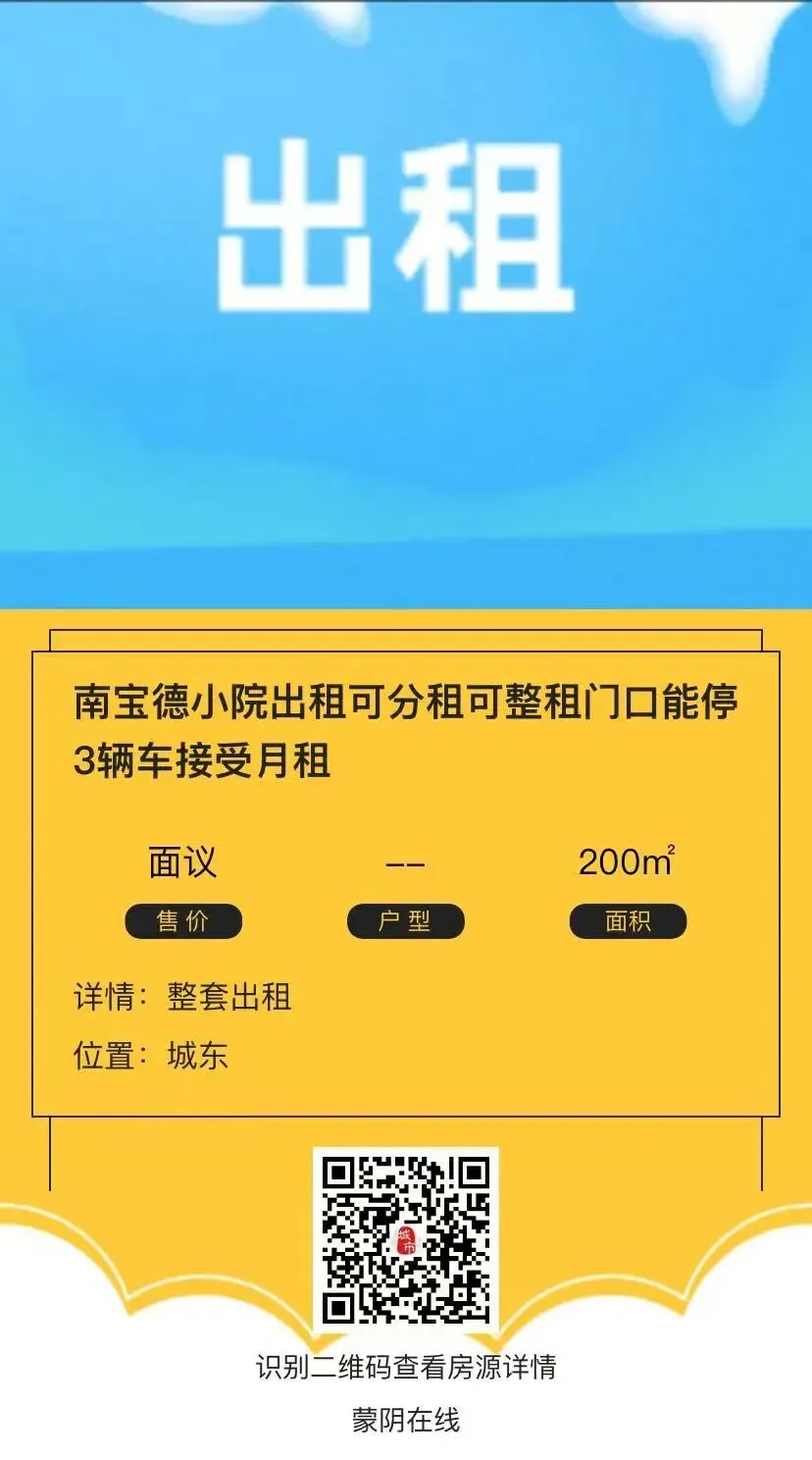 关注蒙阴在线公众微信号—蒙阴在线网络传媒,后续还会不定期为您推荐优质房源!身边有亲朋好友有相关需求的也可以分享给TA!