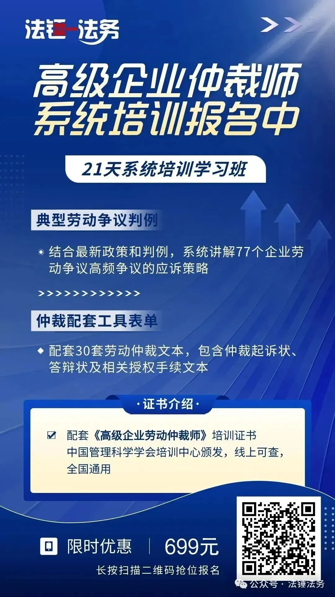 法锤讲堂推出线上课程:《企业劳动仲裁师系统培训班》,教你从0到1,体系化掌握劳动仲裁全流程,完课后颁发《高级企业劳动仲裁师》证书《企业劳动仲裁应对系统培训》