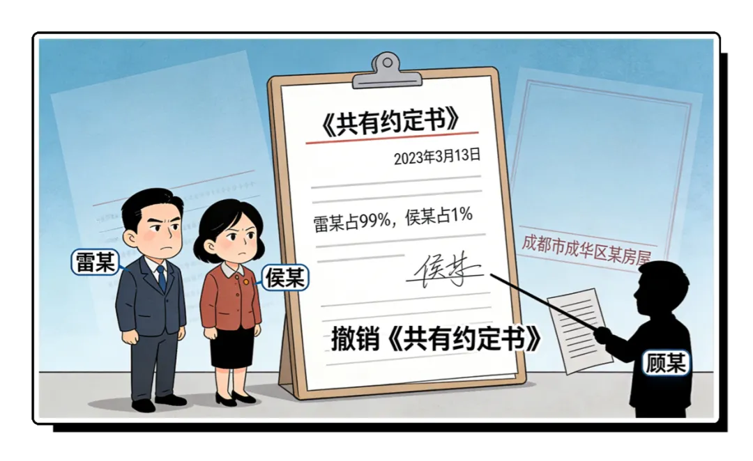 故顾某有权要求撤销该《共有约定书》,并要求侯某、雷某将案涉房屋权属恢复登记成共同共有,故判决撤销侯某、雷某于2023年3月13日签订《共有约定书》,将其二人共同所有的位于成都市某处房屋无偿转让给雷某的行为并恢复登记为共同共有状态,并支付行使撤销权的必要费用。