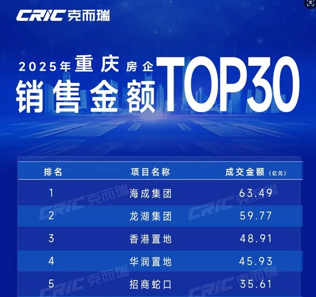 海成超越龙湖,登顶重庆楼市成交榜冠军。