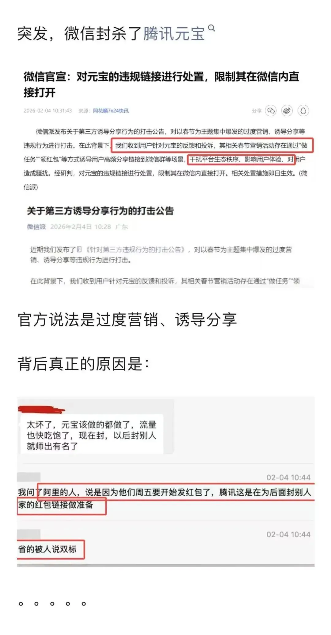 2 . 微信突然封杀腾讯元宝,真正原因是这个。