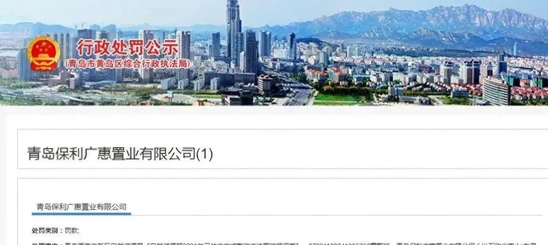 保利一青岛地产公司非法占用土地被罚