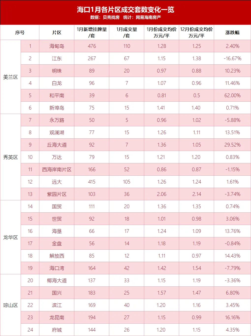 如果用一句话总结1月的海口二手房市场,那就是:成交量持续回暖,价格在博弈中趋稳。