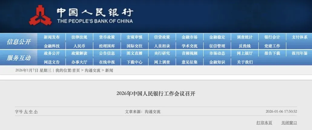 然后1月5日至6日,2026年中国人民银行工作会议召开,部署全年七大重点工作,围绕货币政策实施、金融服务实体经济、风险防控、金融改革开放等核心领域。