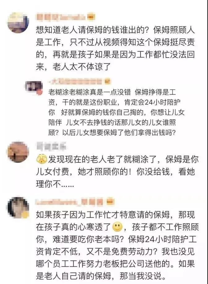 有人认为,保姆照顾老人只是她的本职工作,不能与真正的亲情混为一谈。