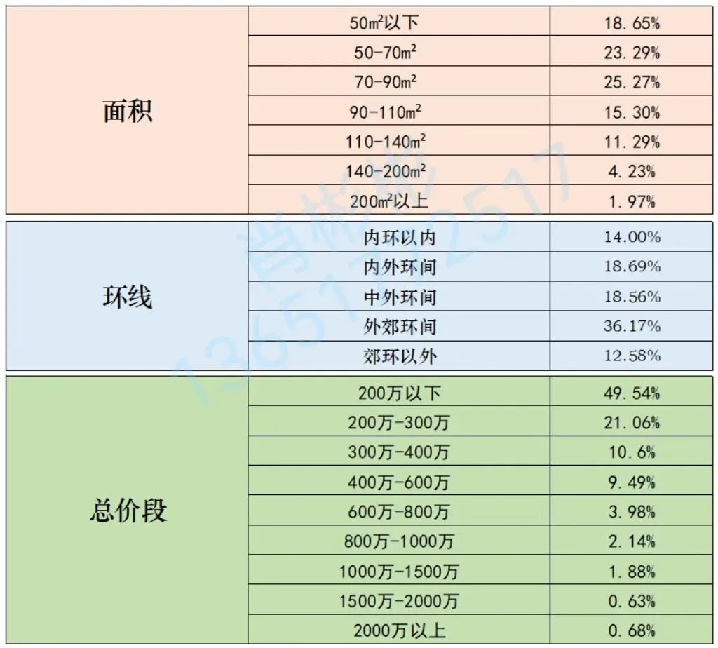 区域分布:外环以外成交占比持续增长,郊区及新兴区域刚需交易活跃;内中环间改善型需求也有释放,中环内“老小”房源成交占比攀升。