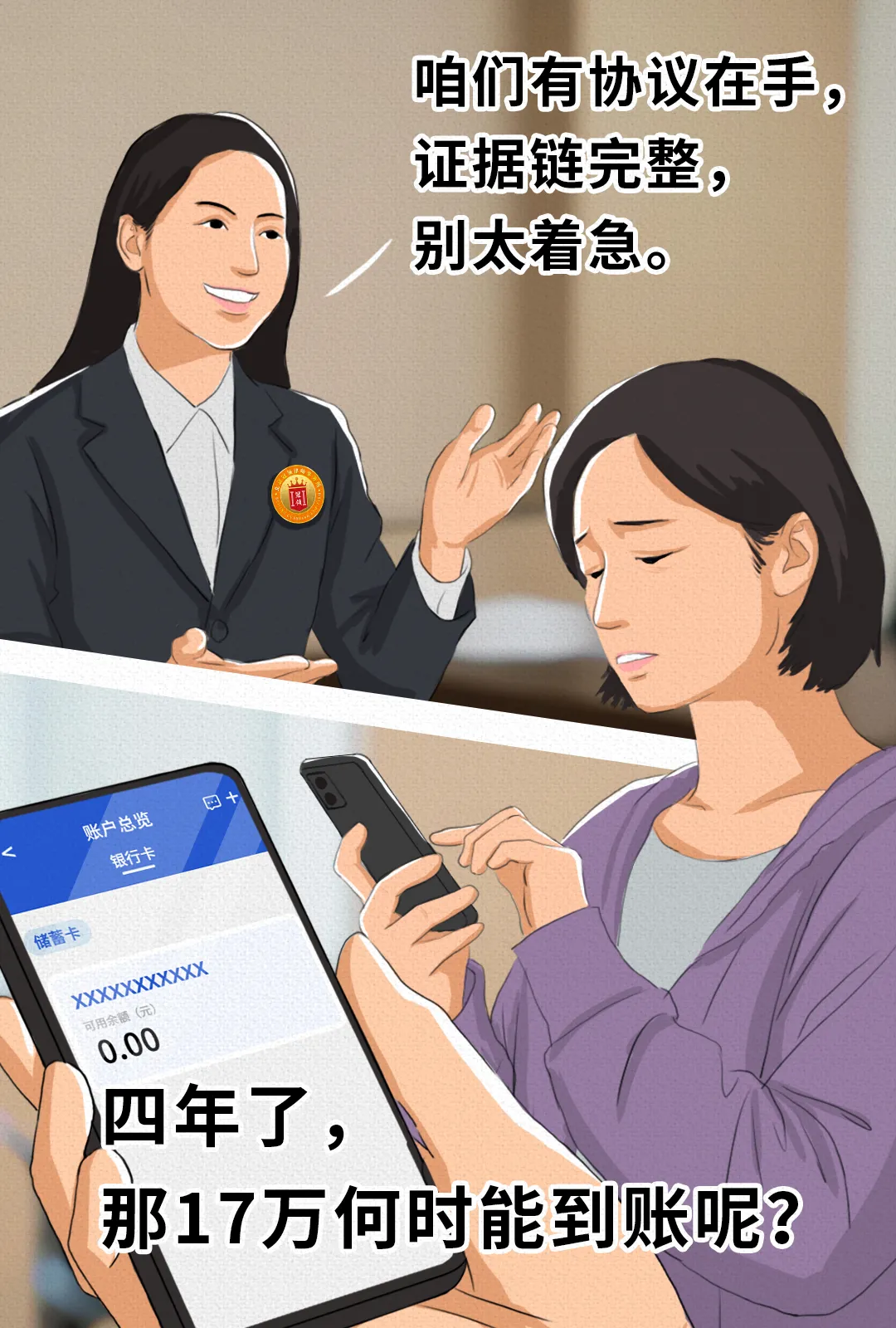 律师帮助宋小兰整理了完整的证据链:2012年结婚证、2021年离婚协议、银行流水显示仅收到3万元、多次催款的聊天记录。这些证据清晰地展现了协议履行情况和违约事实。做好充分准备后,律师代理宋小兰提起了离婚后财产纠纷诉讼。