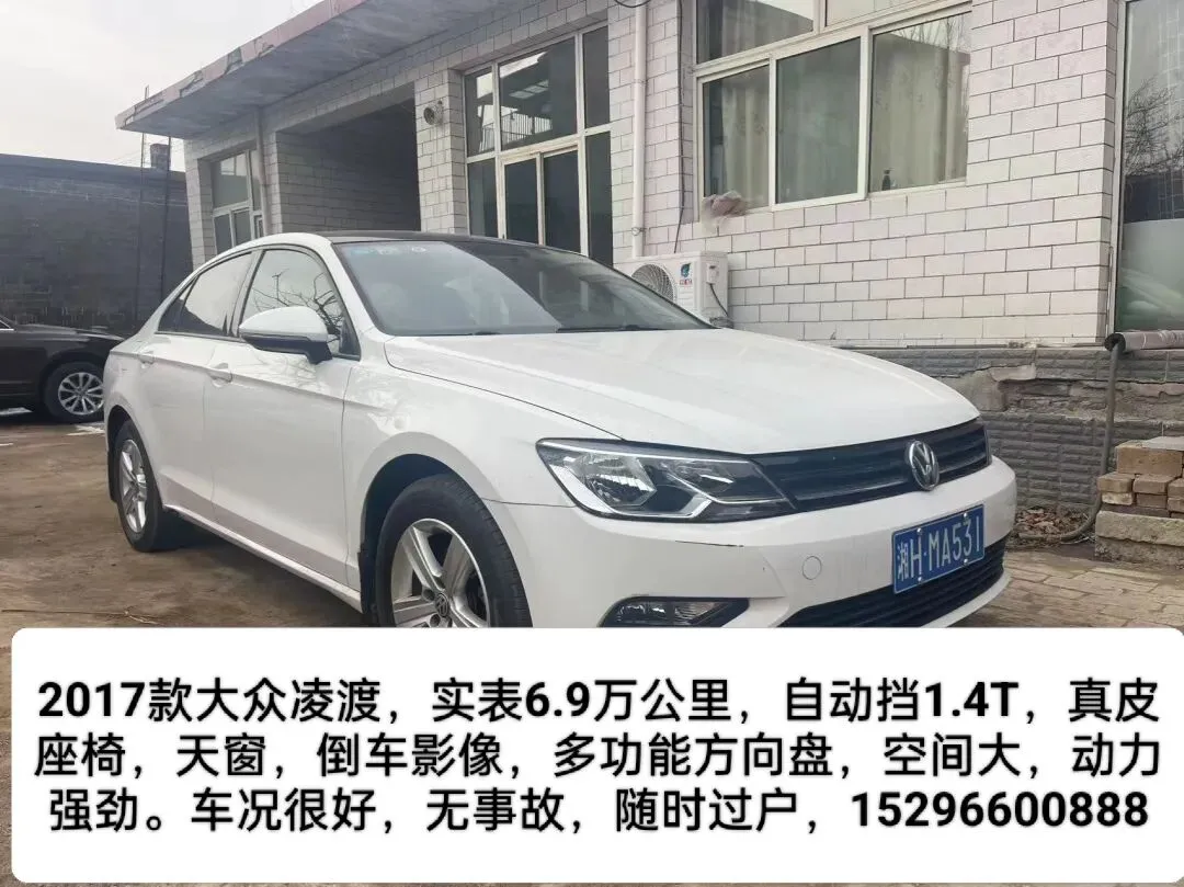 1、2017款大众凌渡(16年12月上牌),实表6.9万公里,自动挡1.4T,真皮座椅,天窗,倒车影像,多功能方向盘,无事故,有补漆(有补漆前照片)车价:3.8万