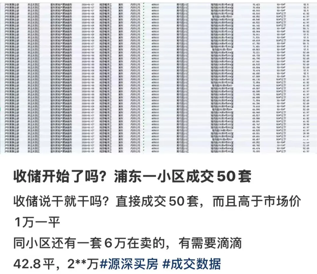 在某平台上,中介贴出了一张表格,配文是:位于浦东内环洋泾板块的潍坊路238弄、252弄,一次性成交了近50套房源。