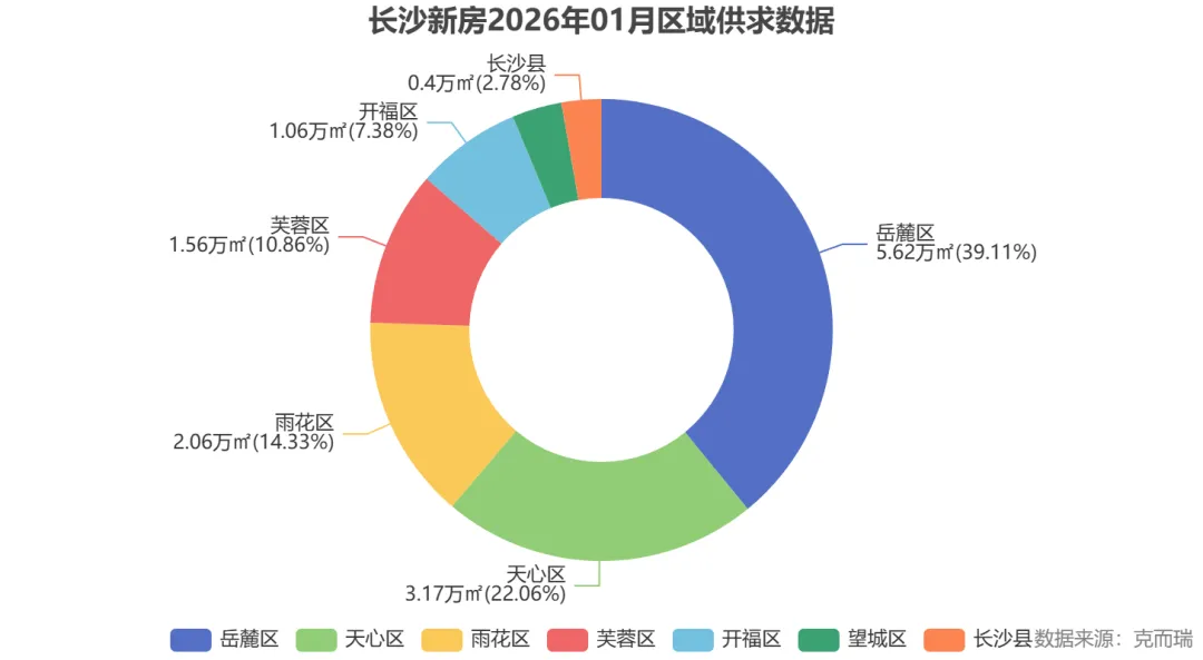 当全市成交量普遍低迷时,岳麓区却逆势突围,成为1月当之无愧的“双冠王”。数据显示,仅第1周(12.29-1.4),该区成交建面高达4.91万㎡,供应建面2.78万㎡。