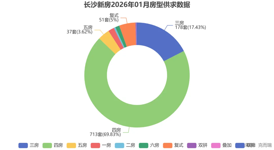 从成交结构看,四房产品以近七成的占比绝对主导,三房紧随其后。这说明改善需求已成为市场主力,而新规恰好满足了这一趋势。