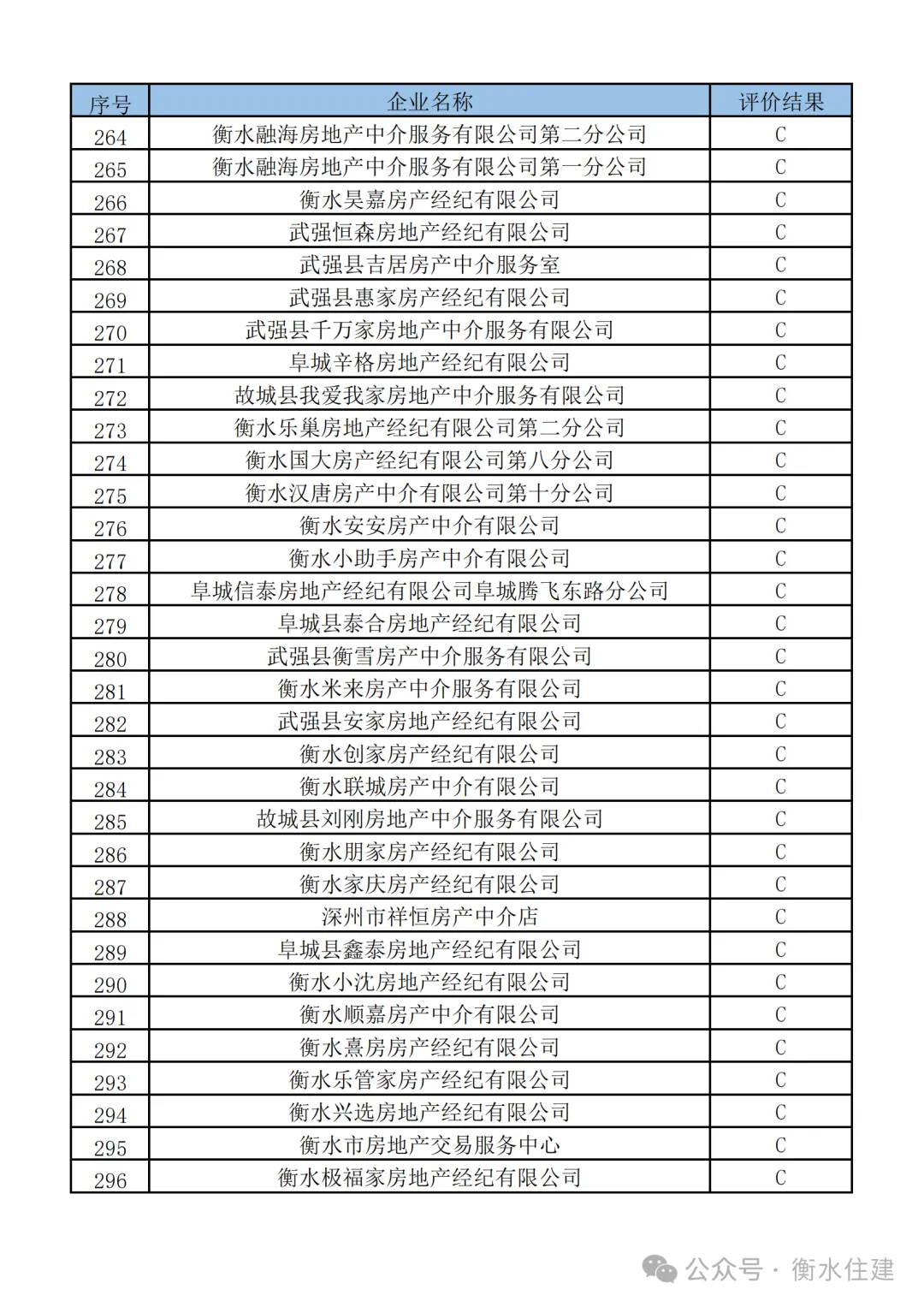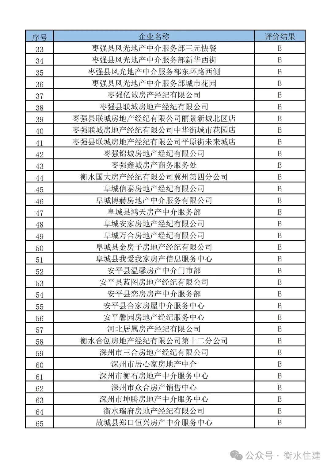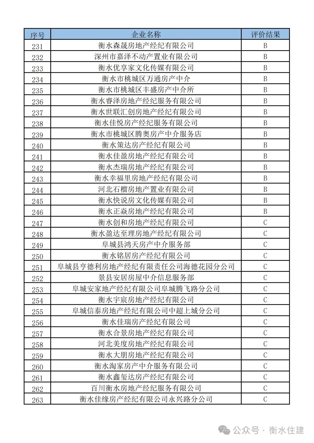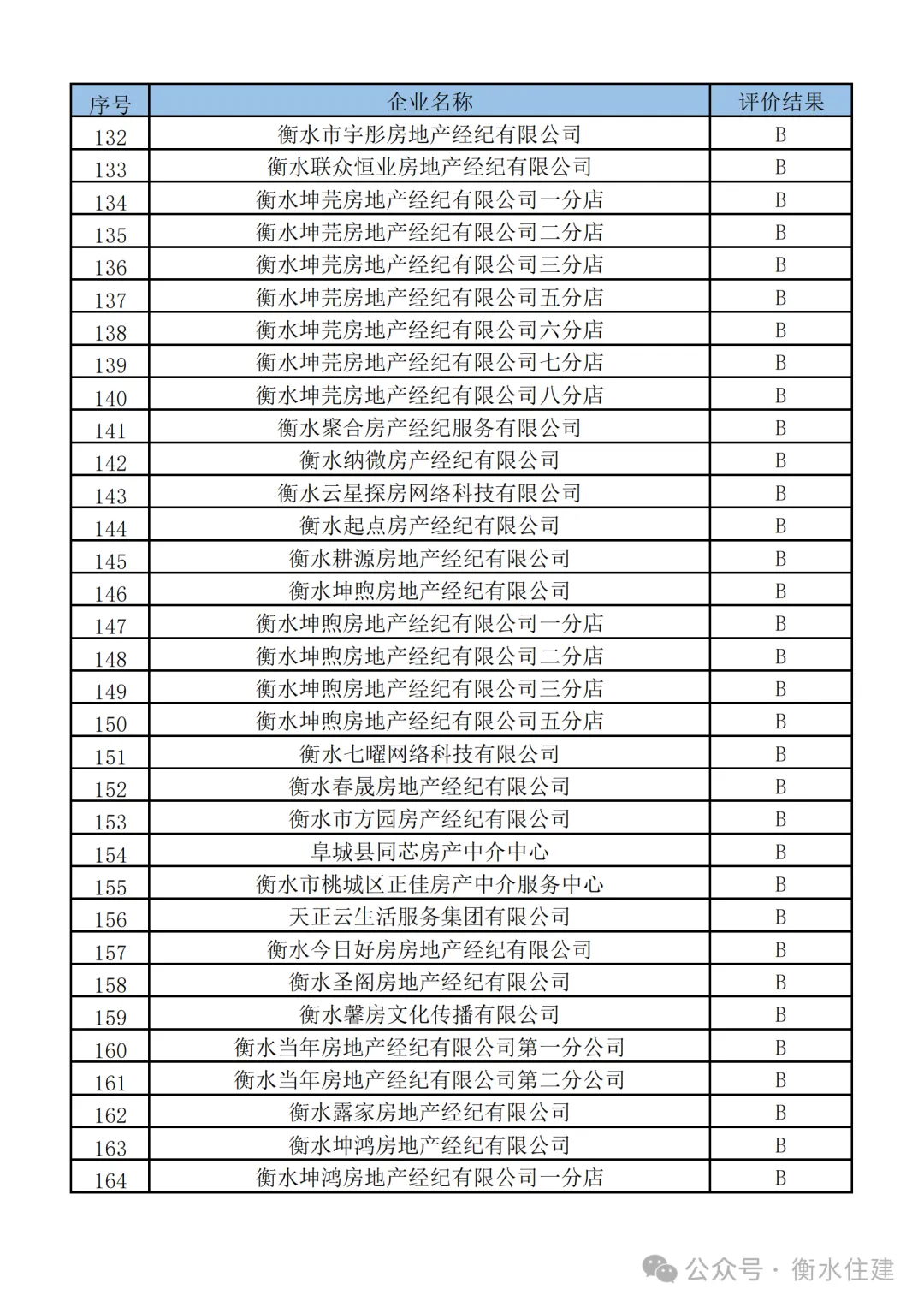 为进一步加强房地产经纪行业管理,规范房地产经纪机构市场经营行为,促进房产交易市场健康发展,近期,市住建局依据《衡水市房地产经纪机构信用信息管理办法》相关规定,对全市2025年下半年房地产经纪机构信用情况完成等级评定。