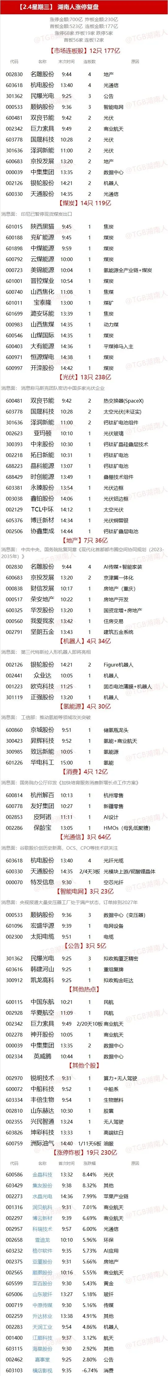 >2.4周三:光伏13/煤炭13/地产6/氢能源5/大消费5/电力电网/机器人/算力/商业航天等