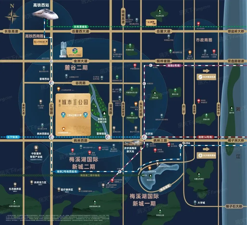 交通便利是公园道壹号的另一大优势。项目临近地铁2号线西延线的注田洲站(在建,原来枫林西路站)的车田湾站(在建,原雷锋西站),可直达梅溪湖和市中心,依托四横四纵路网,实现全城高效通达。