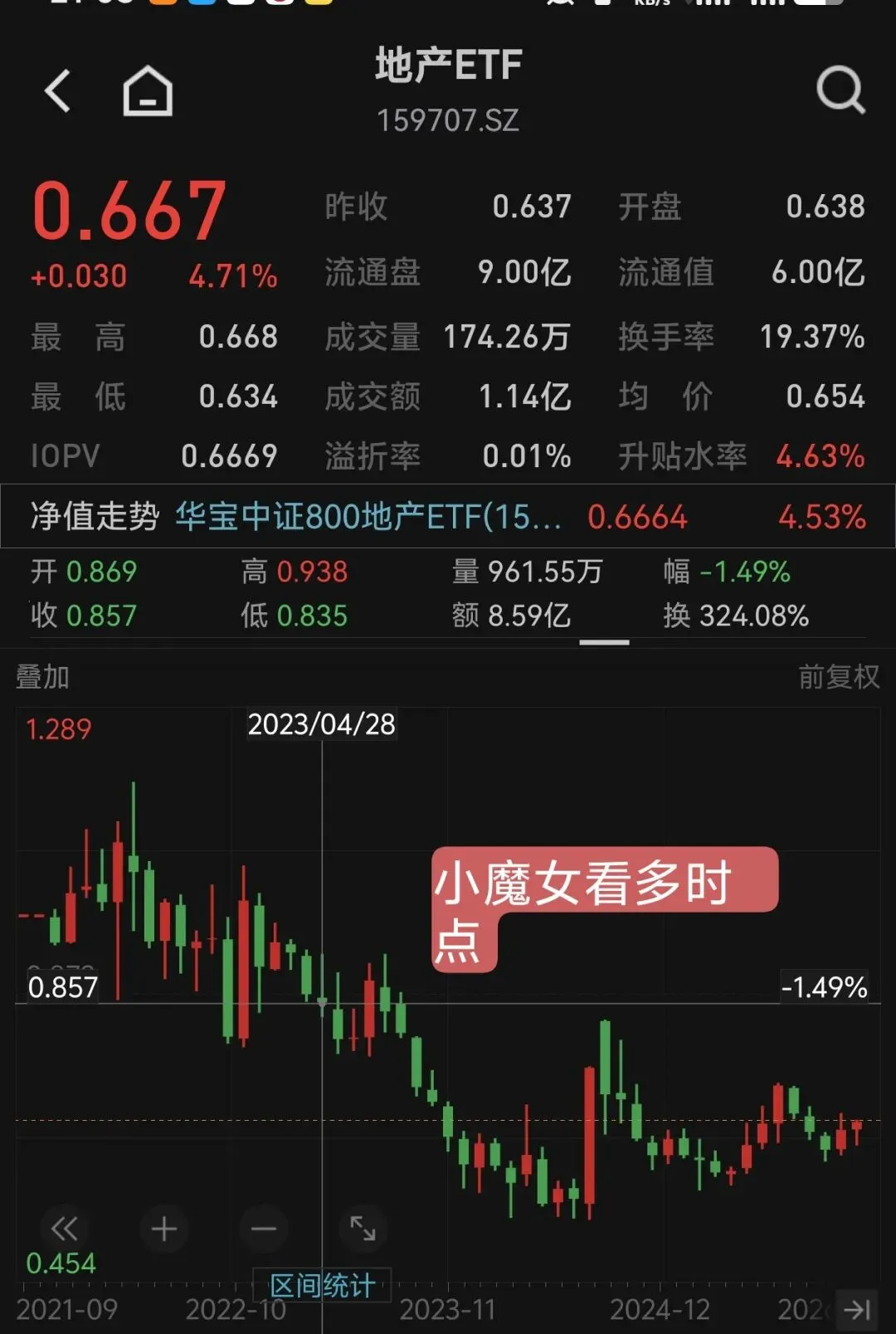 那时的地产ETF价格,还在0.85元以上,万科的股价还在15元。