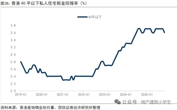 其二,香港租金回报率反超房贷利率。香港私人住宅租金在2023–2025年连续三年上升,租金指数超过2019年高点。
