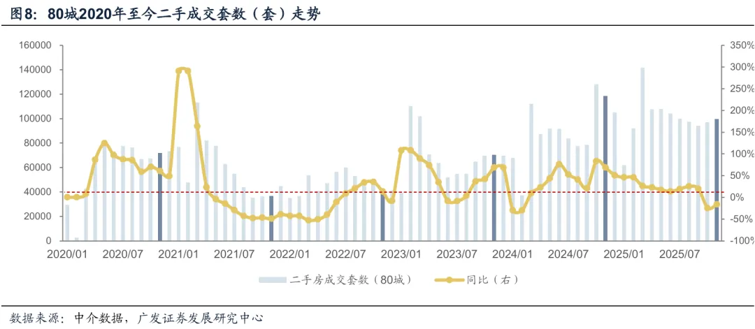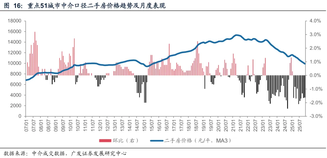 总体上,2025年新房成交和价格双降的局面没有改变,且房企拿地和开工规模也持续降低。虽然成交面积大客观上有去库存的作用,价格始终是根本压制,除非出现如15年初和17年中那种成交和开发面积接近,对价格可能是正向刺激。