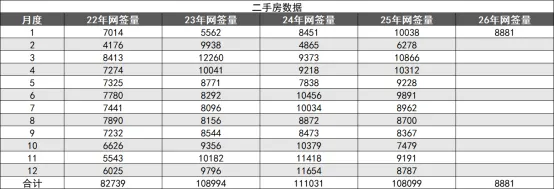 如果我们观察二手房1月的整体网签量,整个二手房网签8881套,这个数据并没有太大亮点,和12月的网签基本持平。