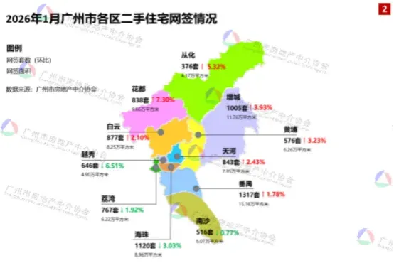 如果我们观察的是新房的成交数据,广州1月新房总共网签只有4327套,和12月相比环比低了32.3%以上,同比去年下降了18.4%。