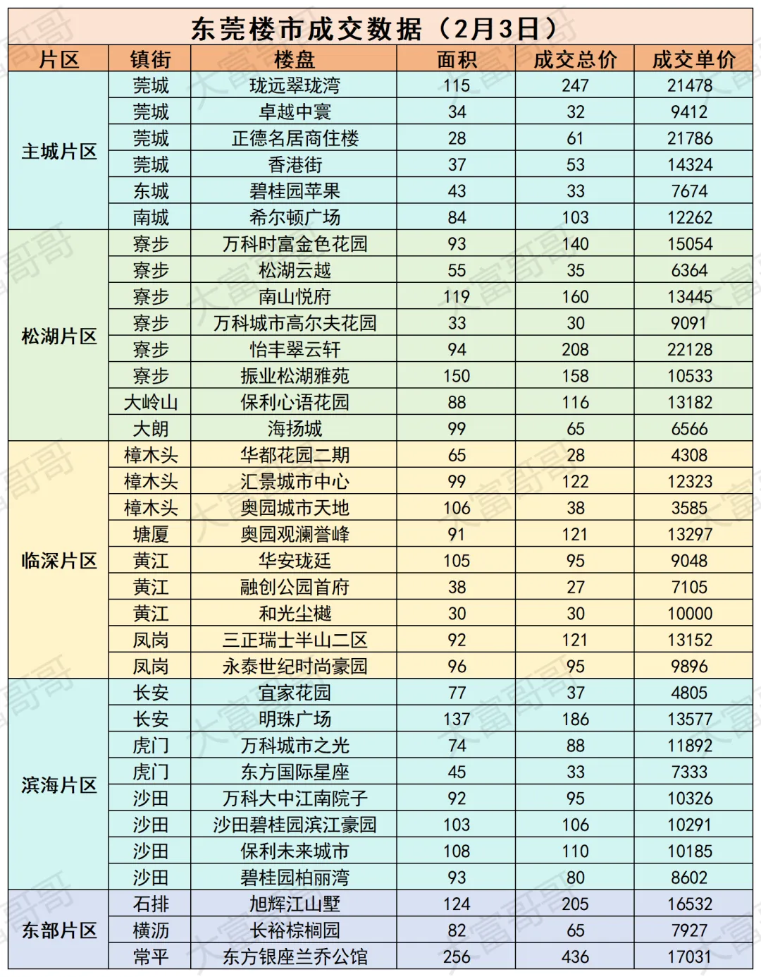 东莞市每日成交数据(2月3日)