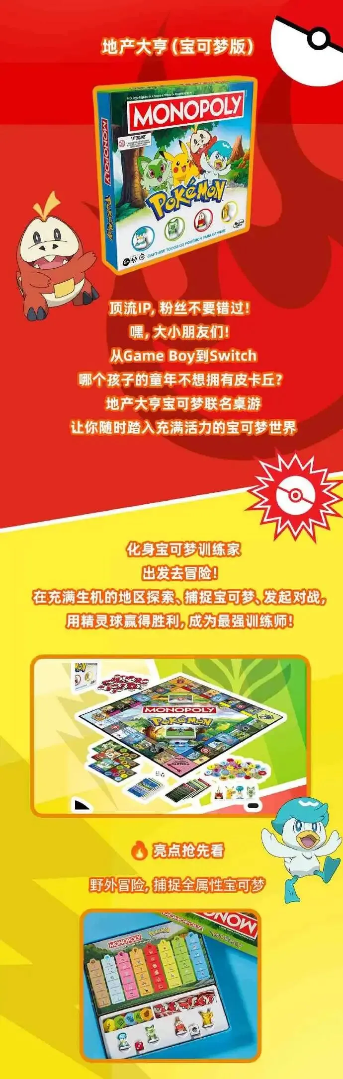 孩之宝推出的宝可梦联名版《地产大亨》桌游,将经典地产经营玩法与宝可梦训练师冒险巧妙融合,让孩子在抓宝可梦的趣味中潜移默化地学习资源规划与理财思维。