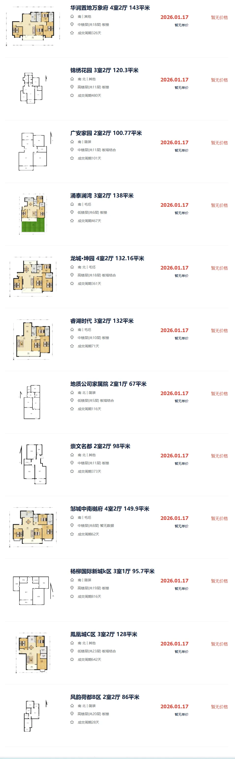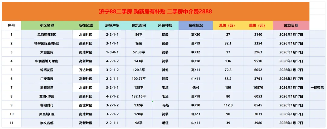 济宁二手房成交市场价参考|1月17日
